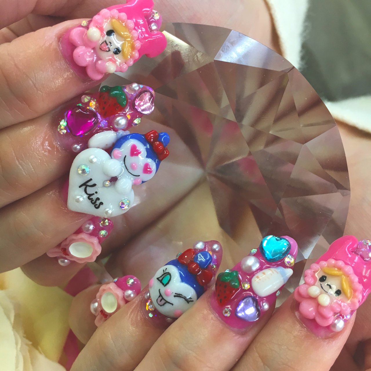 赤ちゃんモチーフ メルヘンな動物ネイル ロング ハードジェル ハンド キャラネイル 赤ちゃん Hylovesnail所属 よしだ ひろきのネイル デザイン ミニモ